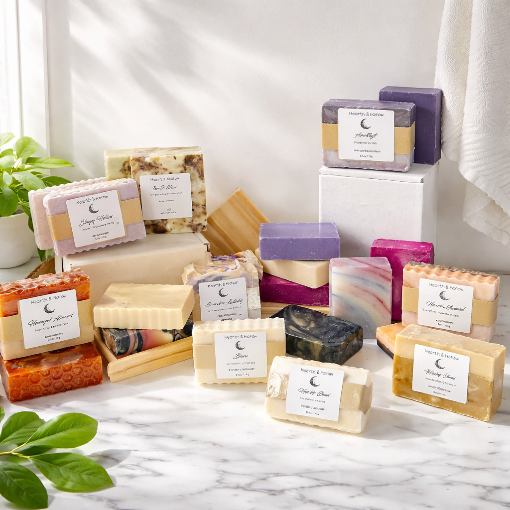 Hearth & Hollow is a handcrafted skincare brand dedicated to simple, nourishing ingredients that care for both body and soul. Our thoughtfully created products include creamy goat milk soap bars, exfoliating sugar scrubs, soothing body lotions, hydrating lip balms, and signature oil blends designed to support a variety of needs. Each item is made with intention, blending natural ingredients and essential oils to create skincare that is gentle, effective, and comforting—a true ritual of self-care.